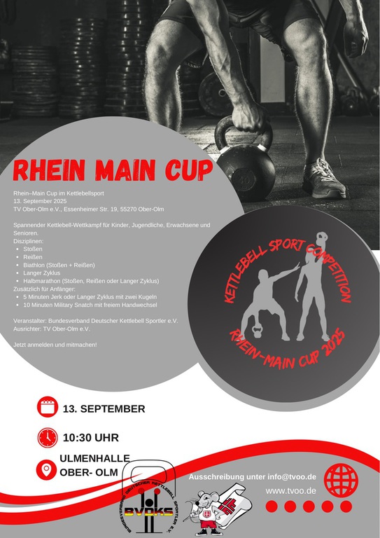 Am 13.09.2025 findet beim TV Ober-Olm der Kettlebell Rhein-Main Cup statt.